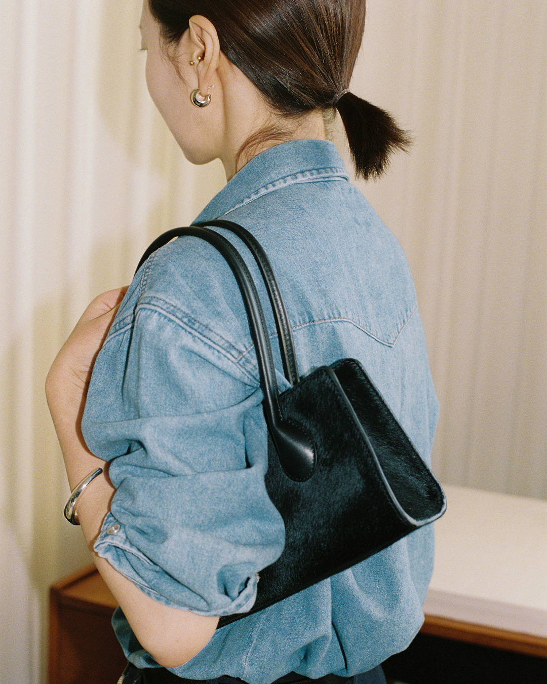 I tend to dress simply and rarely wear much makeup, so I love gold and silver jewelry that adds balance and subtle energy to a look. I’ve been collecting sculptural pieces from Old Céline under Phoebe Philo for a long time. The first drop earrings I bought a decade ago are especially meaningful—I even got my ears pierced just so I could wear them.