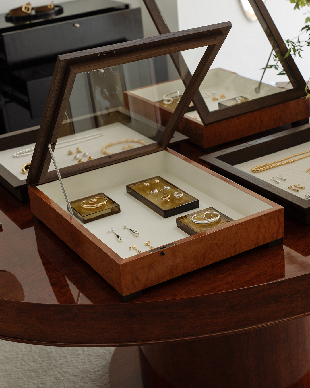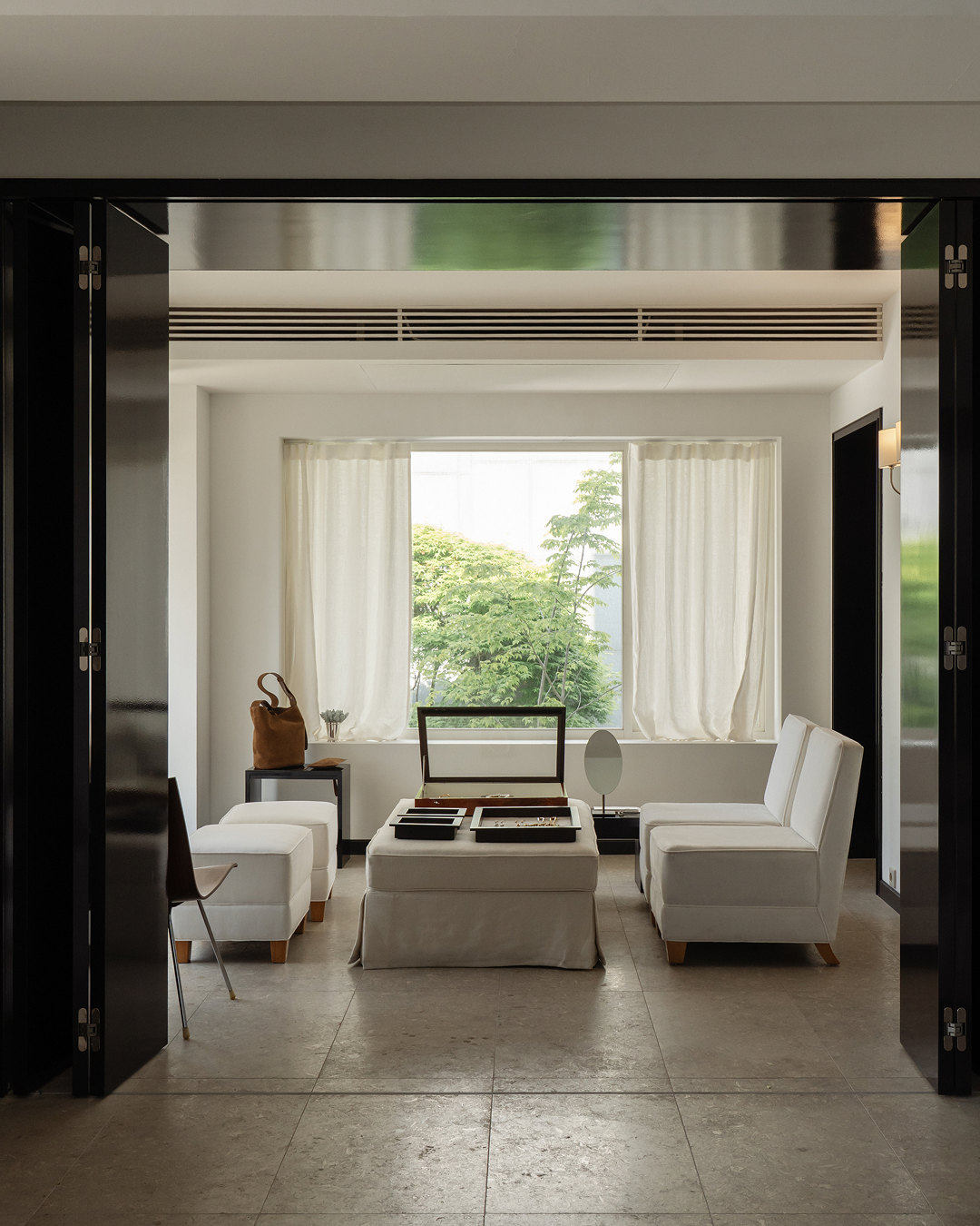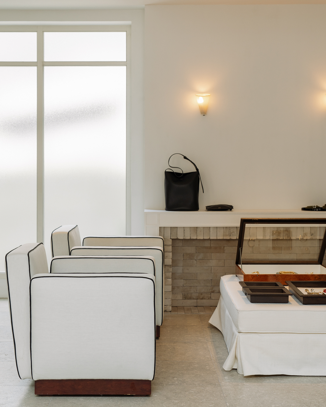 Within this space, our jewelry and leather goods entered into dialogue with the architecture itself, soft light, textured surfaces, and quiet balance.
