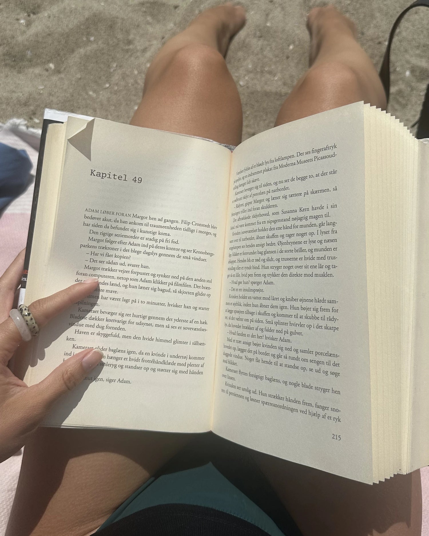 Soaking up the Manhattan Beach sun while getting lost in Stalker by Lars Kepler, wearing The Ines Rings.