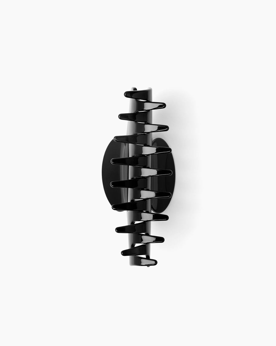 A refined essential for effortless styling. The Faye Hair Clip in black acetate offers both functionality and refined simplicity, and its form is designed to secure the hair with ease while maintaining a sense of understated elegance.