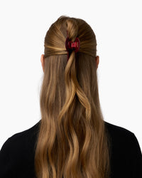A refined essential for effortless styling. The Faye Hair Clip in burgundy acetate offers both functionality and refined simplicity, and its form is designed to secure the hair with ease while maintaining a sense of understated elegance.