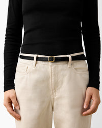 Elevate your wardrobe with the timeless and elegant wardrobe staple, The Georgia Belt Slim in Black Calf Hair. Expertlycrafted from 100% ItalianCowLeather, thisbeltshowcases an exquisite finish thatadds a touch of discreet detail to any outfit.